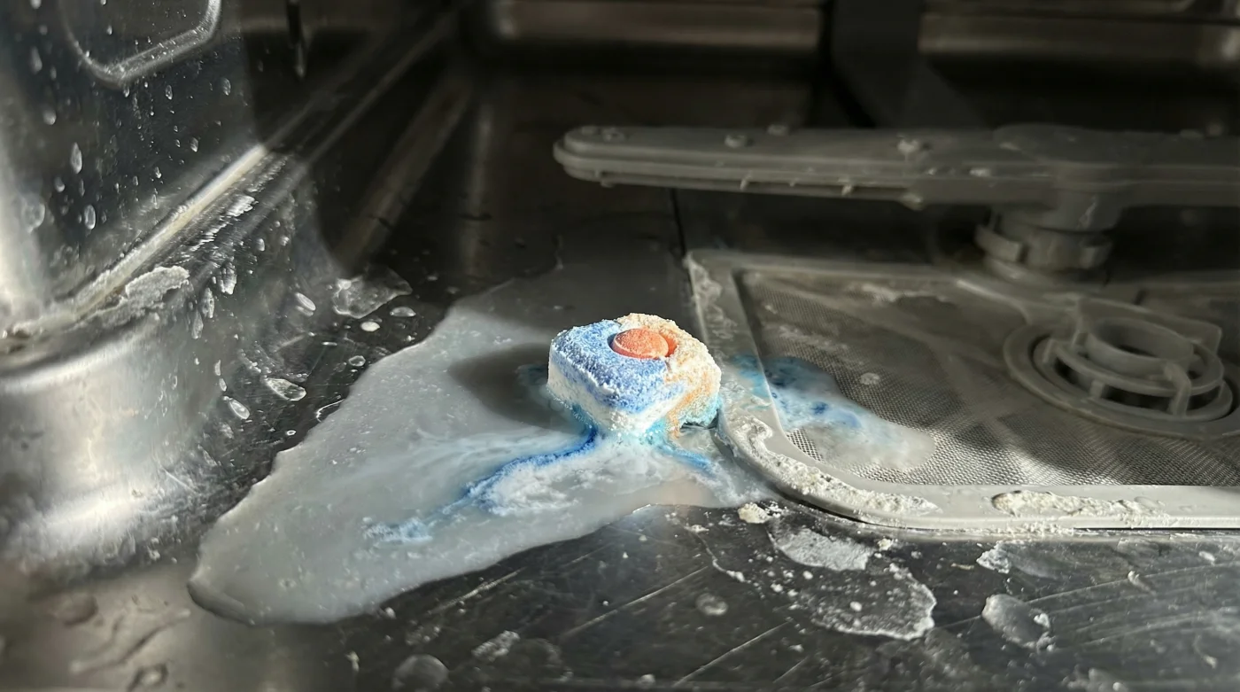 Es ist ein vertrautes Geräusch: Das leise, rhythmische Brummen in der abendlichen Küche, während das warme Licht der Abzugshaube auf den Fliesen tanzt. Du hast die Tür der Spülmaschine geschlossen, den Knopf gedrückt und freust dich auf das beruhigende Gefühl, eine Pflicht erledigt zu haben. Doch am nächsten Morgen ziehst du den Korb heraus und blickst auf milchige Gläser und eine Lasagneform, an der die Reste von gestern hartnäckig kleben. Frustriert erinnerst du dich an diesen einen Ratschlag aus dem Internet: „Wirf den Tab einfach direkt auf den Boden der Maschine, dann löst er sich besser auf.“ Ein vermeintlich genialer Trick, der in Wahrheit den wichtigsten Waschgang deines Geräts komplett sabotiert.